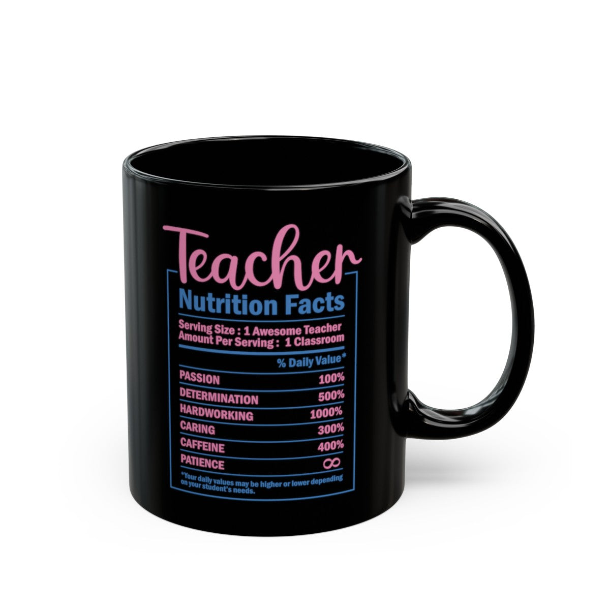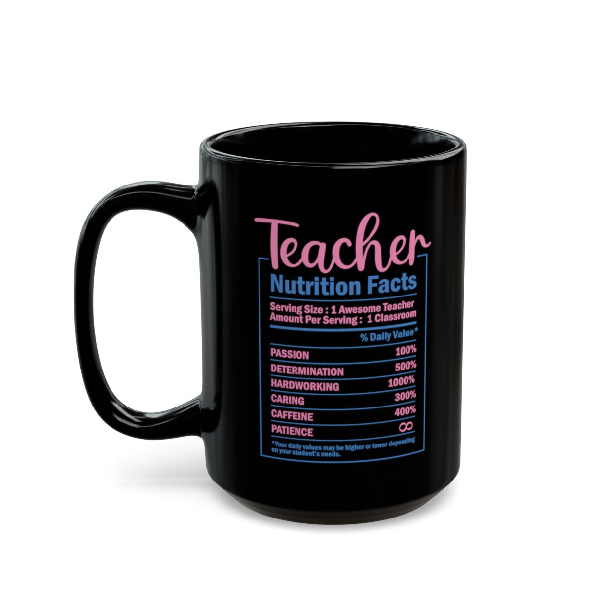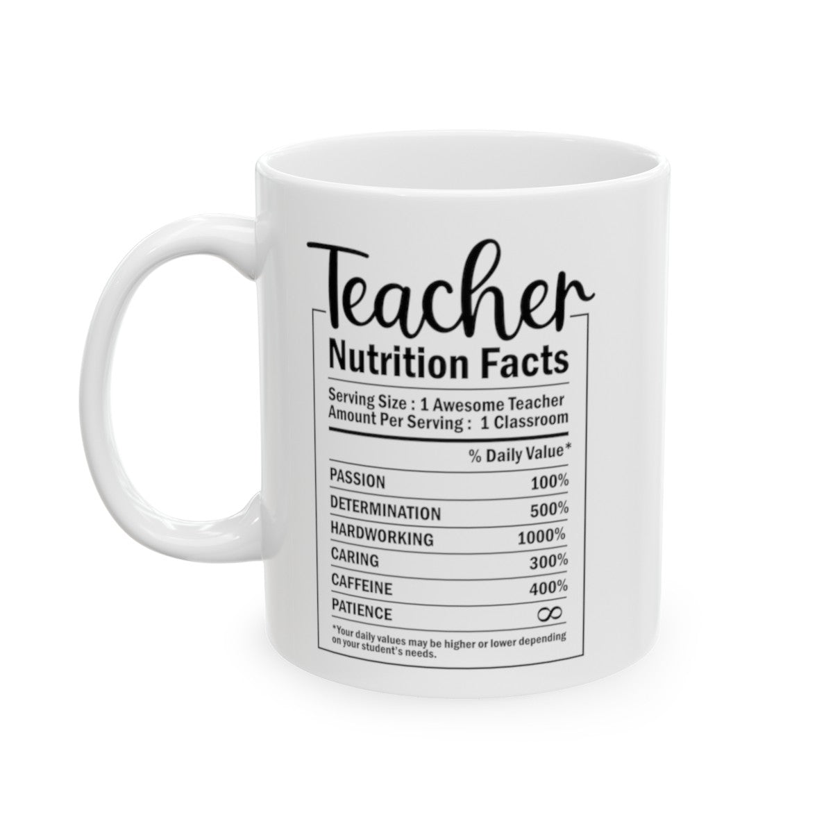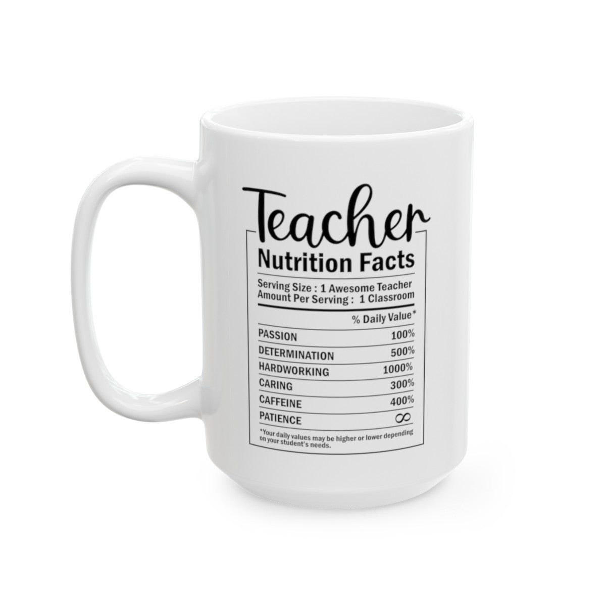Teacher Nutrition Facts, Teacher Appreciation, Back to School, Teacher Gift Ceramic Mug, (11oz, 15oz)