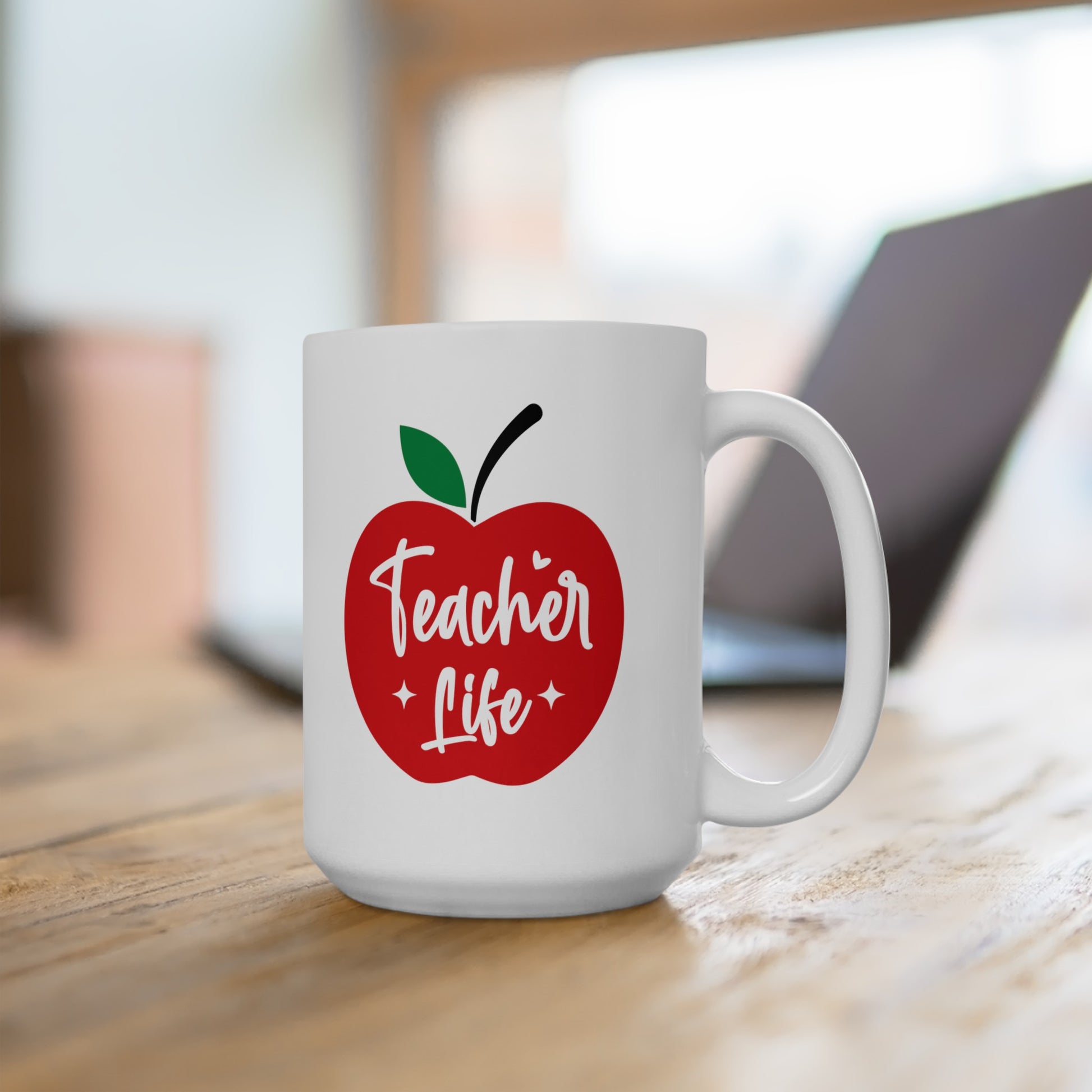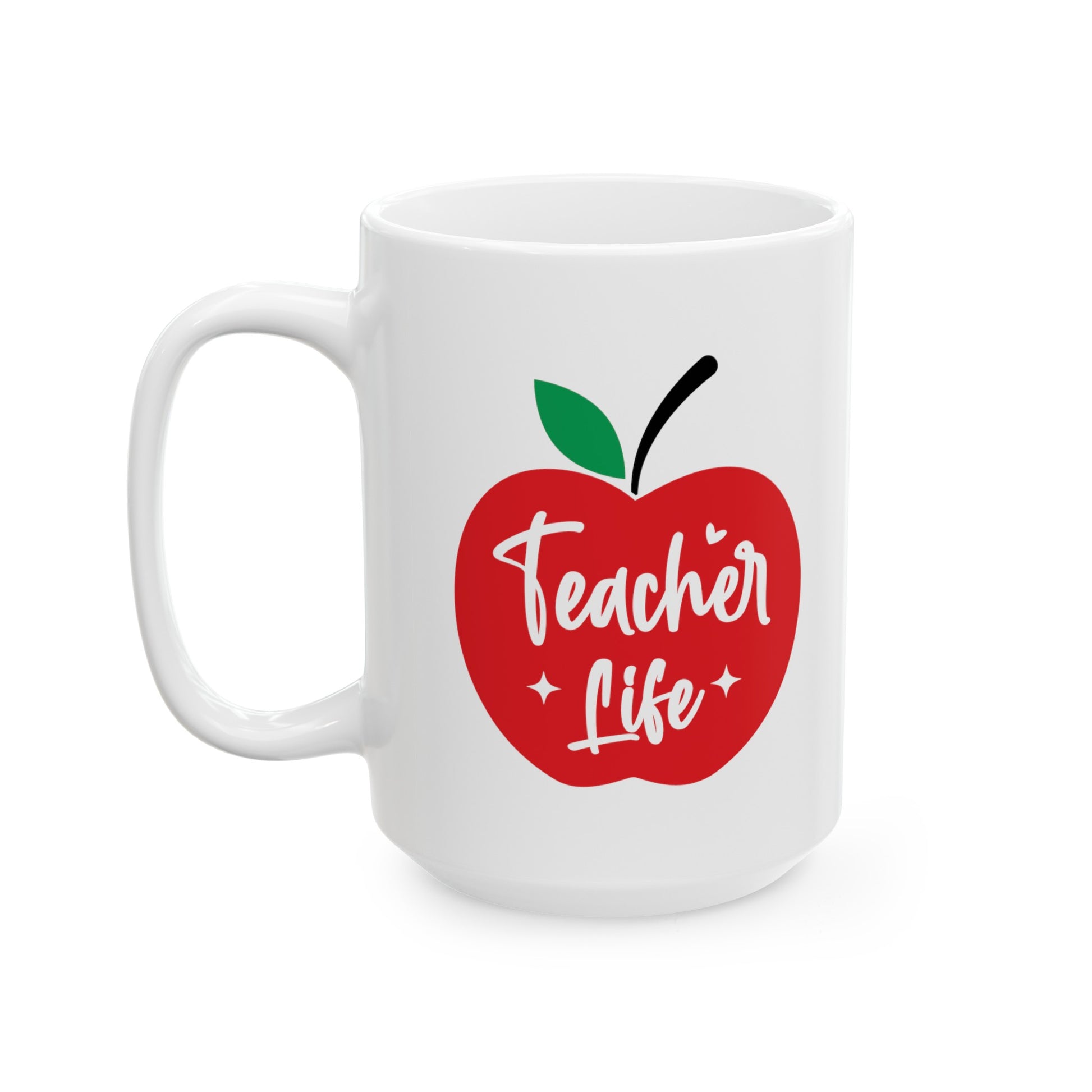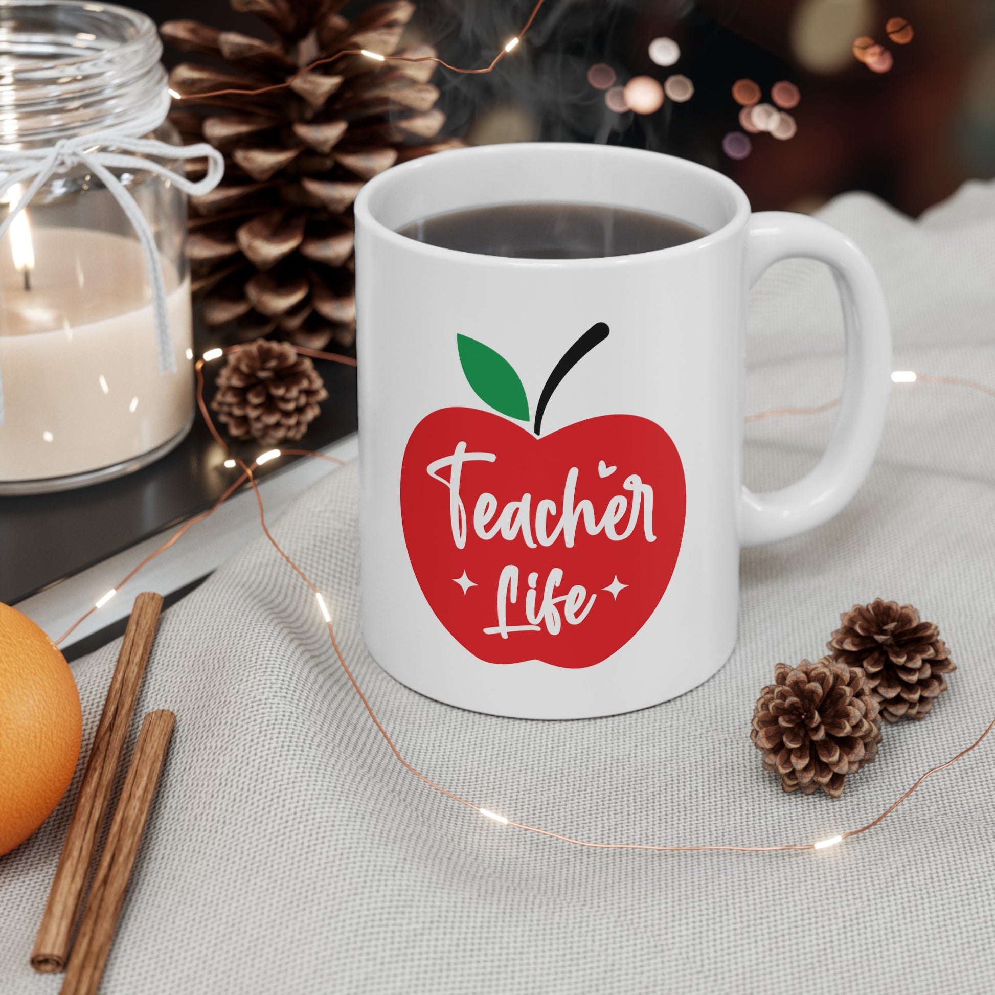 Start your day off right with our Teacher Life Ceramic Mug! Perfect for teacher appreciation week or back to school, this mug is available in 11oz or 15oz sizes and features a cute apple design to celebrate the joys and challenges of teacher life. Show your appreciation for the educators in your life with this thoughtful gift.