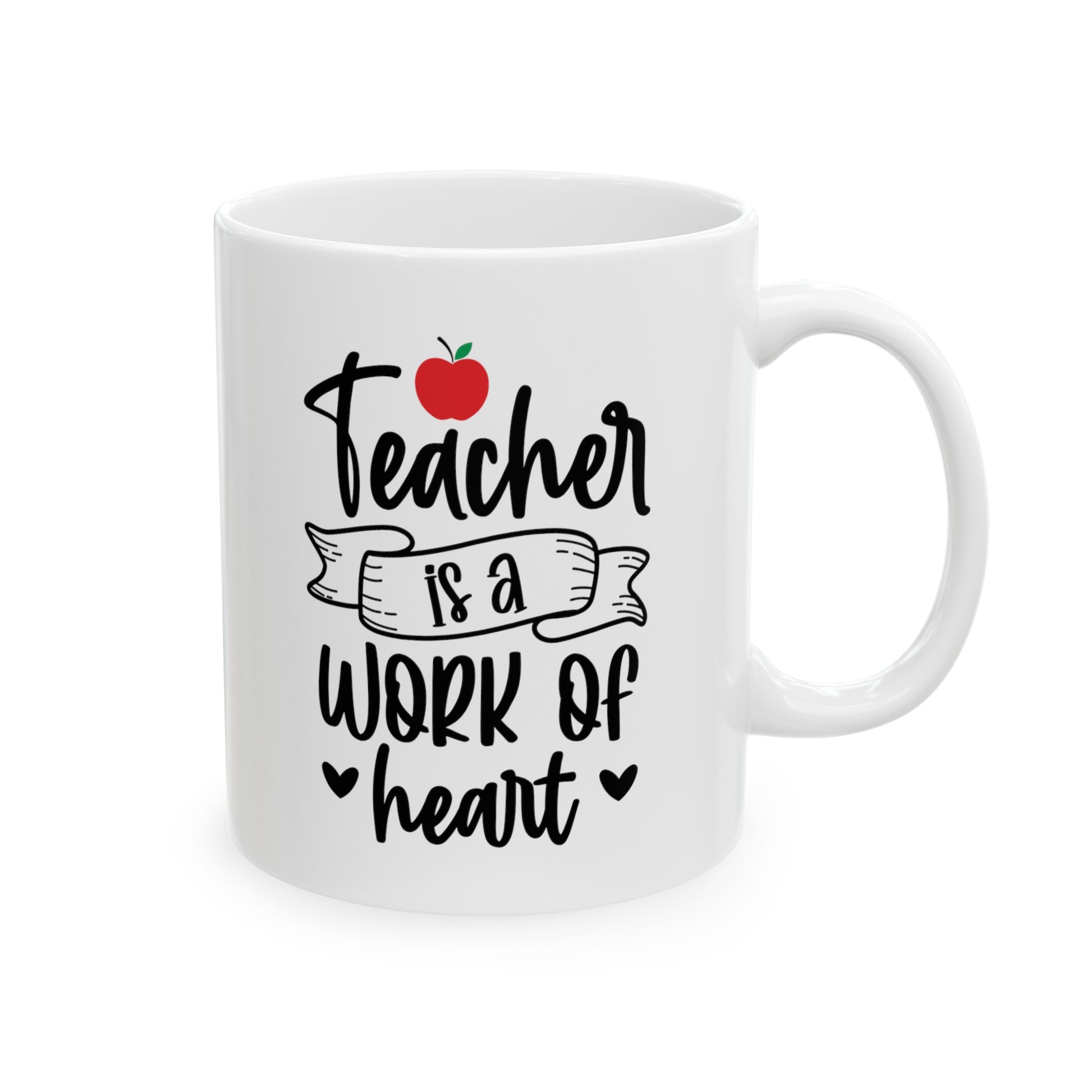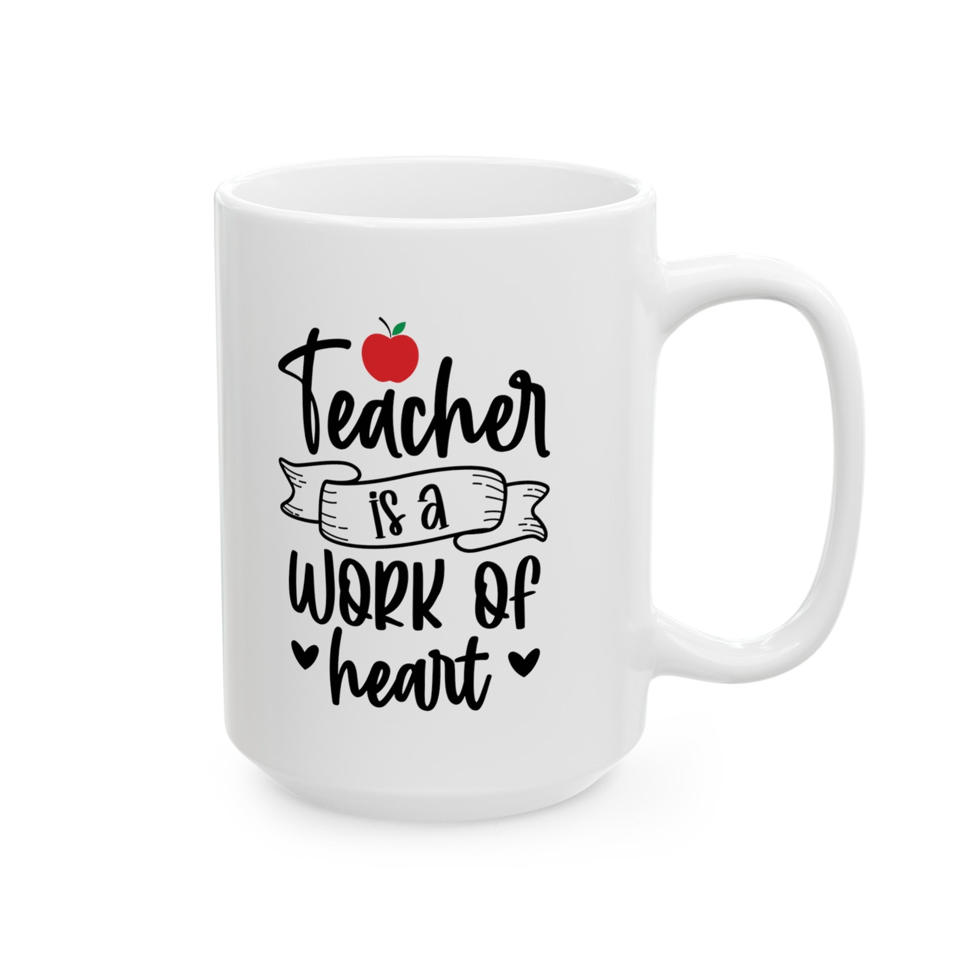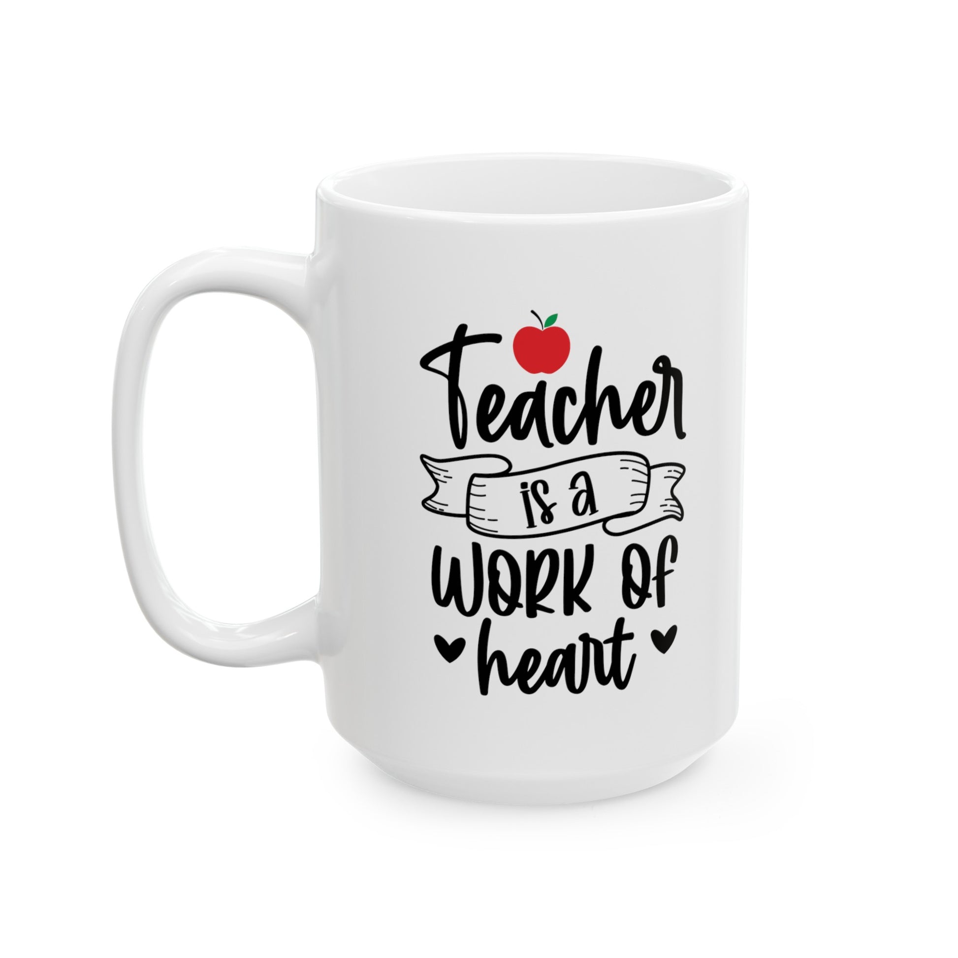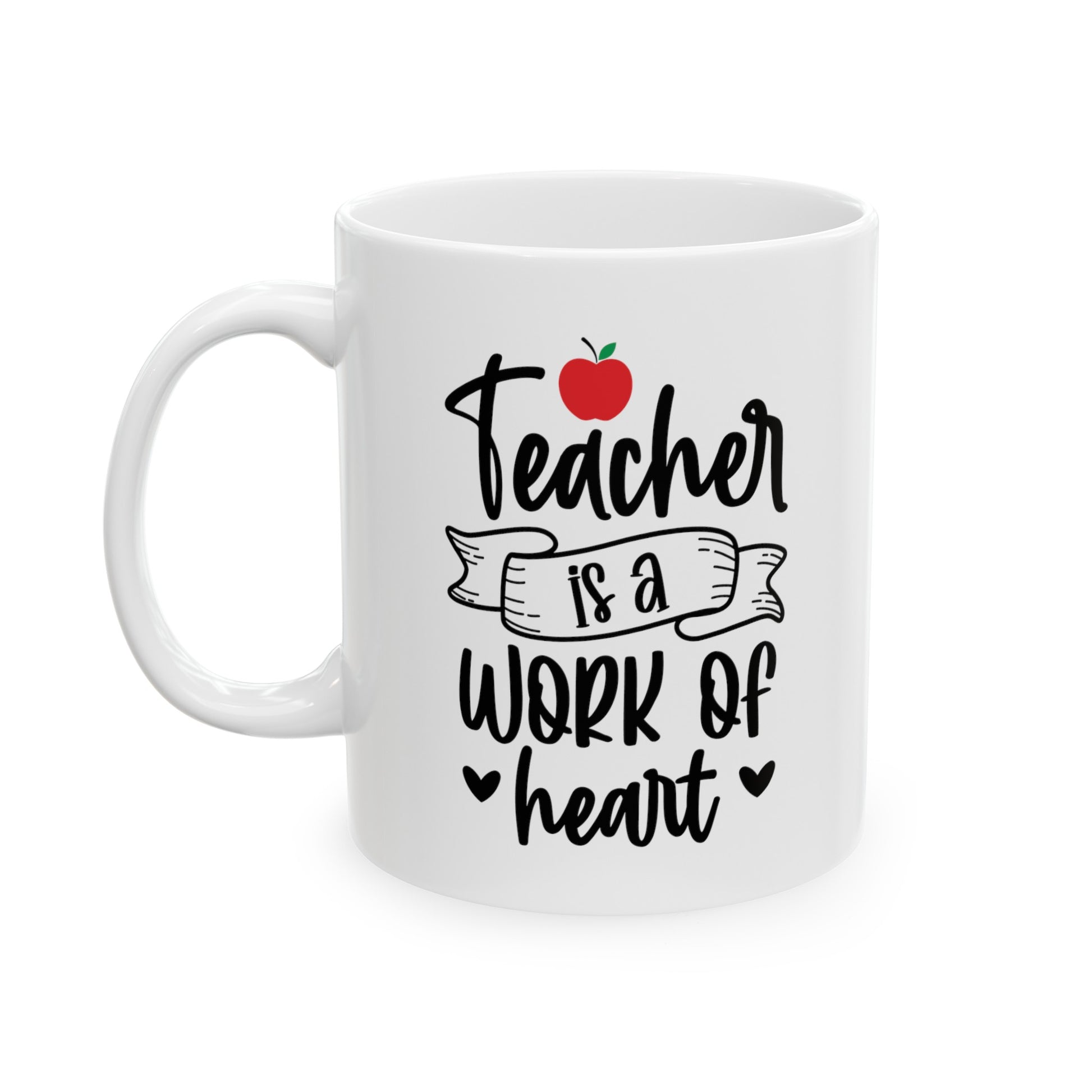 Teacher is a Work of Heart, Teacher Gifts Appreciation Week, Back To School, Ceramic Mug, (11oz, 15oz)